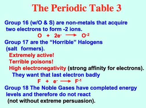 Fluorine, the Tyrannosaurus Rex of the Periodic Table is the most active of the Halogens. Here Fluorine rips off electrons by burning cotton, copper, glass, asbestos, and even water!! Video: