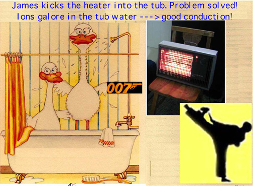 Our hero is saved by the electrical conductivity of bathwater! Video: