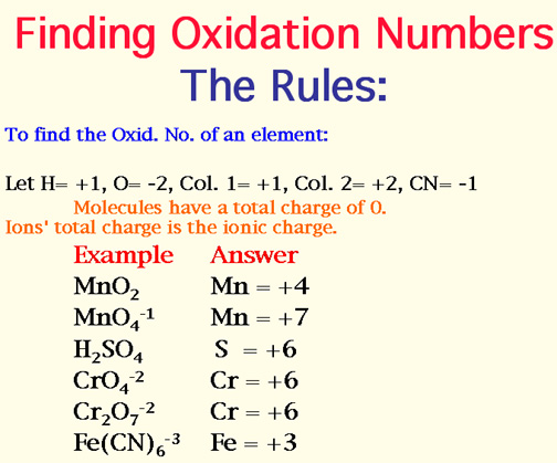 For the in-class Oxidation Numbers (ups & downs) problems to be attached to this assignment, Click Here.
