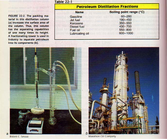 It is possible to construct a distillation apparatus which separate distillations for each step are not necessary. structure of the apparatus is such that each step takes place a separate section of the equipment. In the laboratory, a distillation apparatus is often used in separating volatile liquids. In industry, a fractionating tower is used for the same on a commercial scale. Petroleum is separated into useful products by fractional distillation.