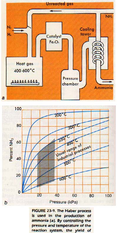 The reaction for the preparation of ammonia by the Haber process is N2(g) + 3H2(g) ---> 2NH3(g) + heat