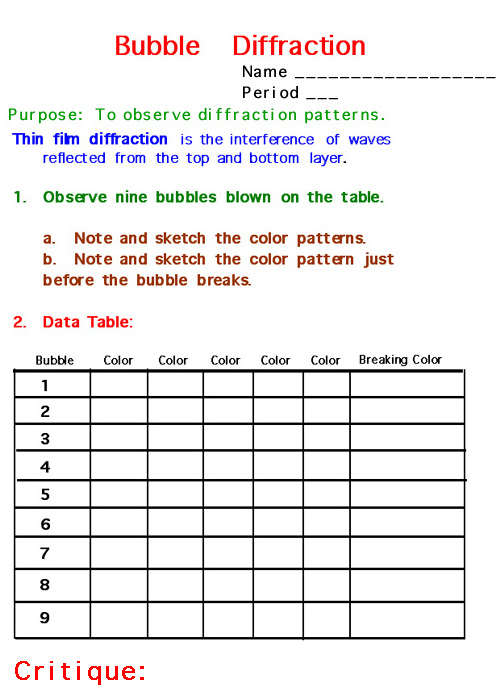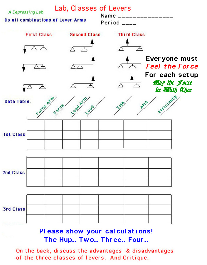 Labs to Print Labs to Print Measuring with Accuracy.pdf Lab 26 Photometry.pdf (bring a candle) Density by Mass & Volume.pdf Lab 27 Plane Mirrors.pdf Speed & Acceleration (of balls).jpg Lab 28 Curved Mirror.pdf Speed for 50 Meters/pdf Lab 29 Index of Refraction.pdf Find g by Dropsies.pdf Lab 30 Converging Lens.pdf Lab 6 Force Vectors.pdf Lab 32 Magnification.pdf Lab 7 Coefficient of Friction.pdf Color Lab.pdf Lab 12 Power, Great Stairs.pdf Lab 33 Diffraction & Interference.pdf Lab 13 Hook's Law Elasticity.pdf Bubble Diffraction.jpg Lab 9 Centripetal Force.pdf Light Review for Blitz.pdf Lab Rotation.pdf Lab 36 Electrostatics.pdf Lab 8 Torque/Center of Gravity,pdf Electrical Conductivity.jpg Classes of Levers jpg Resistance of Resistors.pdf Lab 11 Inclined Plane & Pulleys.pdf Resistors in Series.pdf Lab Surface Tension.pdf Parallel Resistors.pdf Archimedes' Principle, Density.pdf Compound Resistors,pdf Lab Cartesian Diver.pdf Three Way Switch Circuit.pdf Lab 19 Specific Heat.pdf Extra Credit Three Way Circuit.pdf Lab 20 Heat of Fusion.pdf Electricity Review.pdf Lab 21 Heat of Vaporization.pdf Magnetic Fields.pdf Lab 22 Mech. Equiv. of Heat.pdf Solenoids & Electromagnetism.htm Determination of Absolute Zero.pdf Electromagnetic Induction.pdf The Coffee-Cream Problem.pdf Lab AC Problems 1 .pdf ........ Graph of Expected Results.jpg Lab AC Problems 2 .pdf Home Lab Which Freezes Faster.pdf Lab AC Problems 3.pdf (extra credit) Lab 10 The Pendulum.pdf Review for AC & Electronics.pdf Lab 23 Pulses on Springs (Skip this one). Atomic Physics.pdf Lab Coupled Pendula.pdf Half Life Lab.pdf HomeLab: Waves/Interactions w/Video Field Trips in Modern Physics. Lab 24 Waves, Ripple Tank.pdf Review Topics.htm Lab 25 Resonance,SpeedofSound.pdf Spring Final Review Topics & Probs.pdf Open House Demos to Perform.pdf