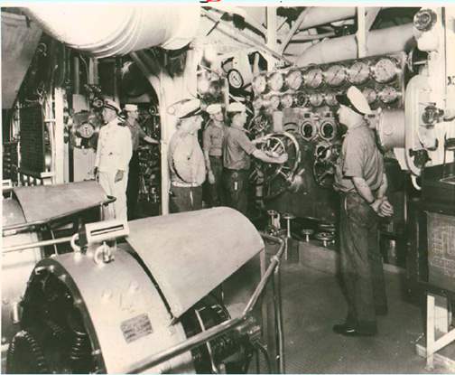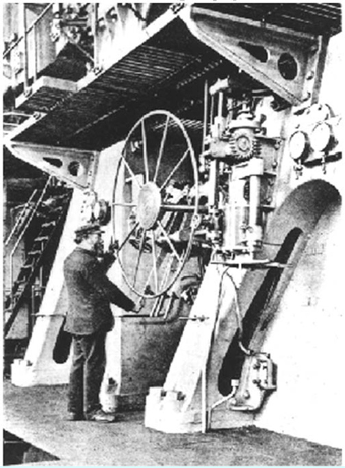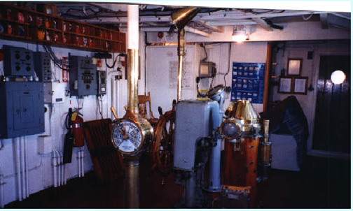The Bridge and Engine Order Telegraph to the great steam engines below.