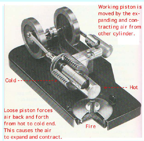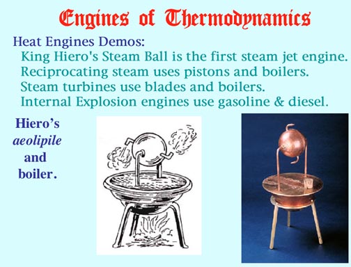 A Heat Engine opened Greek Temple doors when a fire offering was built on an altar. Expanding hot air and steam pushed water into a counter weight to open the Temple doors showing that the God of the Temple was pleased with the offering.