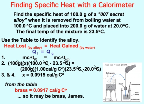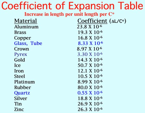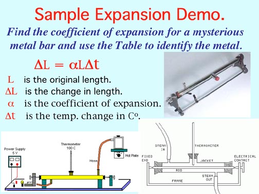 The Problem: L = 600.0mm, t1 = 20oC, t2 = 100oC, so Δt = 80Co. ΔL = 0.93mm. Substituting and solving for α, we find that α = 19.3 X 10-6 ΔL/Co. From the Table, it's Brass.