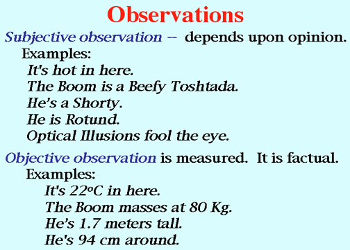 Observation, Matter and Energy,