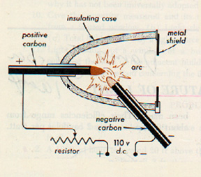 ..... Arc light. The carbon electrodes are electrically heated to 4000oC!