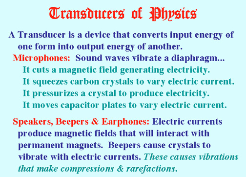 The Siren is a centrifugal air pump that takes in air in through the resonator and blows it out of the side holes. The holes are opened and closed as the pump rotates causing Compressions and Rarefactions.