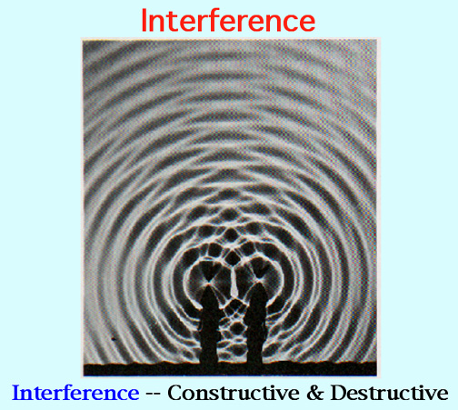 When waves simultaneously interfere with each other, new resultant waves are produced. The top two waves generate the bottom resultant wave. by RH Good. Video: