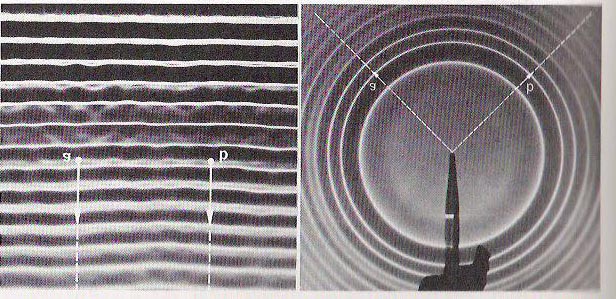 Their paths show that the directions of propagation of these two segments of the advancing circular wave lie along radial lines away from center of disturbance.