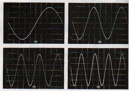 The quality of the tones produced by orchestral instruments varies greatly. For example, the tone produced by a French horn consists almost entirely of the fundamental and the second harmonic. This harmonic content can be recognized by comparing Figures 11-15(A) and ll-15(C). The tonal quality of the trumpet is due to the intensity of its high-frequency harmonics. See Figure ll-15(D).