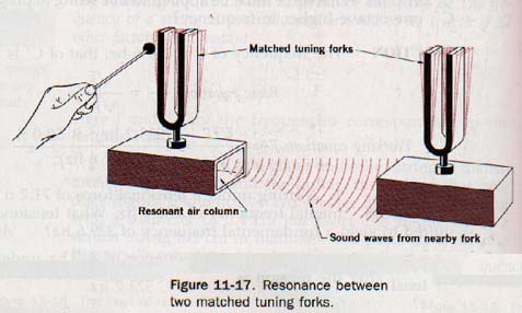 11.15 Resonance The two tuning forks in Figure 11-17 have the same frequency. They are mounted on sounding boxes that increase the intensity of the sound through forced vibrations. One end of each sounding box is open.