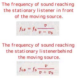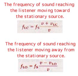 Where fL is the frequency heard by the listener, fs is the frequency of the source, v is the velocity of the listener, and vs is the velocity of the source.