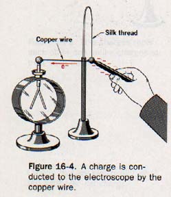 16.5 Conductors and Insulators Suppose that an aluminum coated pith ball is suspended by a silk thread and the ball is connected to the knob of a leaf electroscope by means of a copper wire, as shown in Figure 16-4.