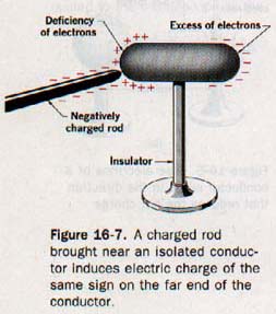 Any conducting object when properly isolated in space can be temporarily charged by induction. The region of the object nearest the charged body will acquire a charge of the opposite sign; the region farthest from the charged body will acquire a charge of the same sign. See Figure 16-7. This statement is consistent with the basic law of electrostatics stated in Section 16.2.
