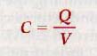 where C is the capacitance of a capacitor, Q is the quantity of charge on either plate, and V is the potential difference between the conduction plates.