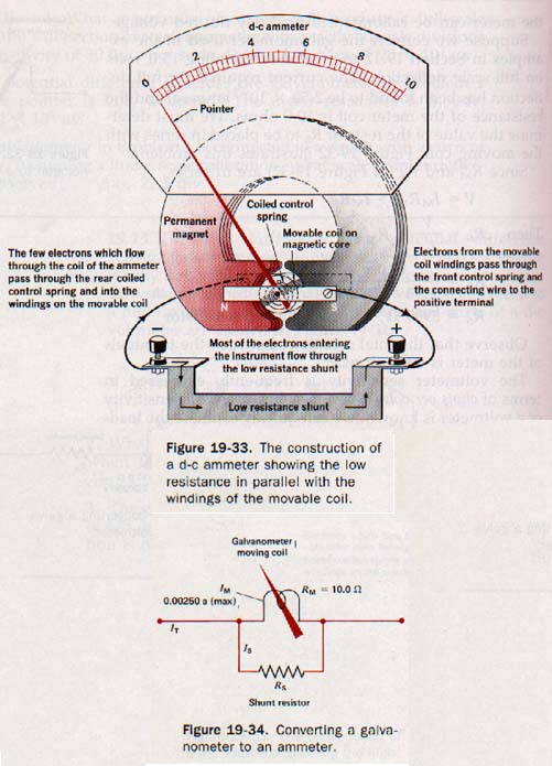 19.14 The d-c Ammeter We could use the basic galvanometer in Section 19.12 as a microammeter by calibrating the graduated scale to read directly in microamperes. However, the meter would not be useful in circuits in which the current exceeded 2500 microamperes.