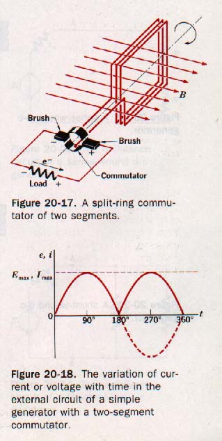 A split ring commutator changes the AC in the rotor into pulsating DC by reversing the polarity of the rotor each half cycle.