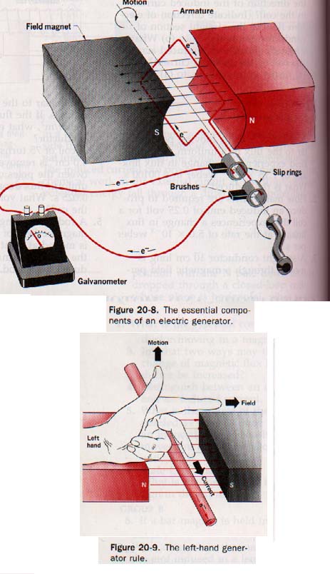 An electric generator converts mechanical energy into electric energy. The direction of induced electron current in the armature turns is determined by use of the left-hand generator rule.