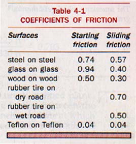 Alloys have also been developed that are in effect self-lubricating. For example, when steel slides over an alloy of lead and antimony, the coefficient of friction is less than when steel slides over steel. Bearings lined with such an alloy reduce friction. From Table 4-1 it is also obvious that if a bearing is coated with a plastic such as teflon there is very little friction. Such bearings are used in electric motors where the use of a liquid lubricant is undesirable.