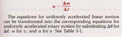 5.7 Angular Acceleration From the study of linear motion we know that a change of velocity defines acceleration. The same is true for rotary motion. Changing either the rate of rotation or the direction of the axis involves a change of angular velocity and thus defines angular acceleration. The uniform rate of change of linear velocity is known as linear acceleration (Section 3.5).
